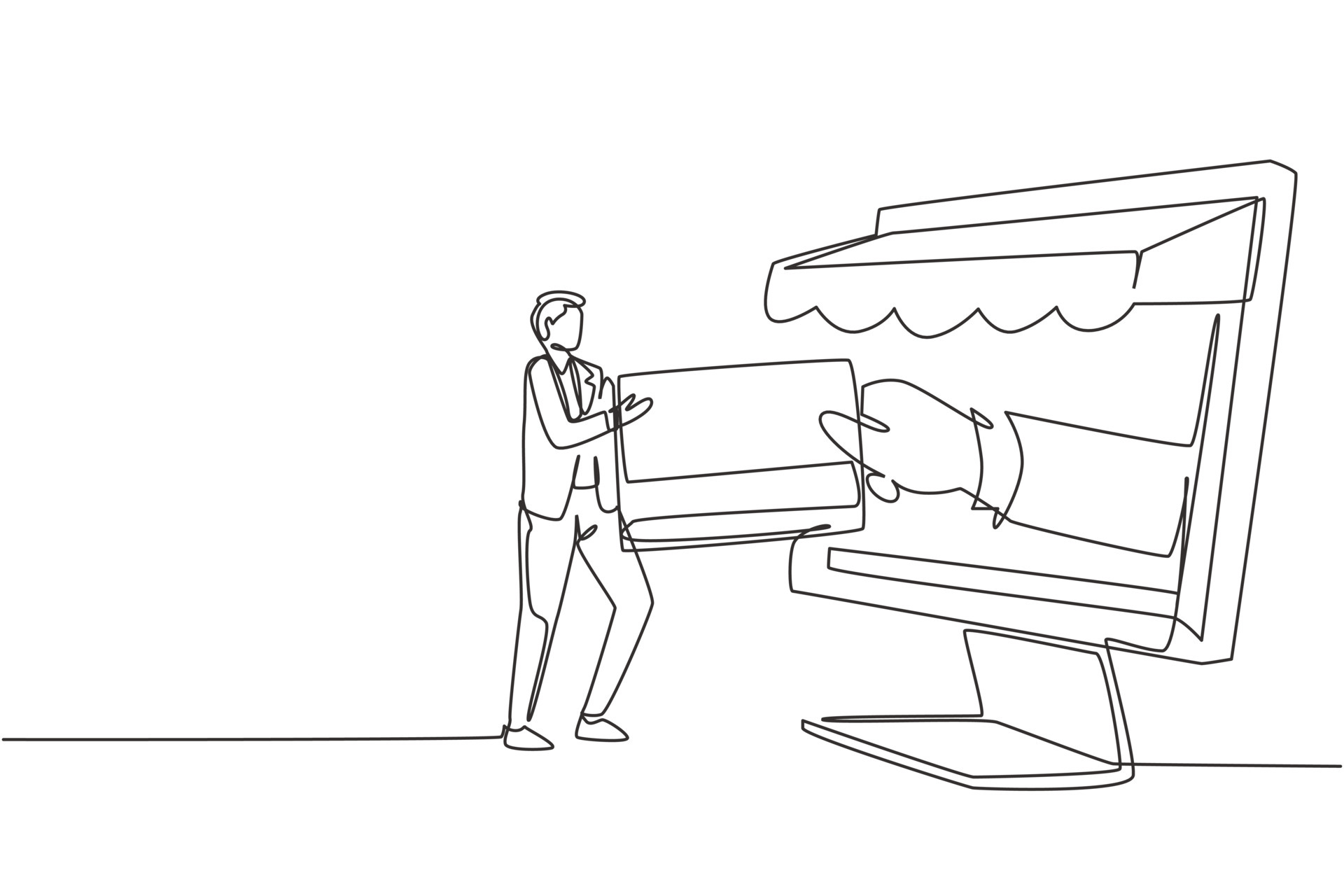 Single Continuous Line Drawing Young Man Inserting Credit Card Into Large Canopy Monitor Screen And Accepted By Hand Digital Payment Concept Dynamic One Line Draw Graphic Design Vector Illustration 4482592 Vector Art